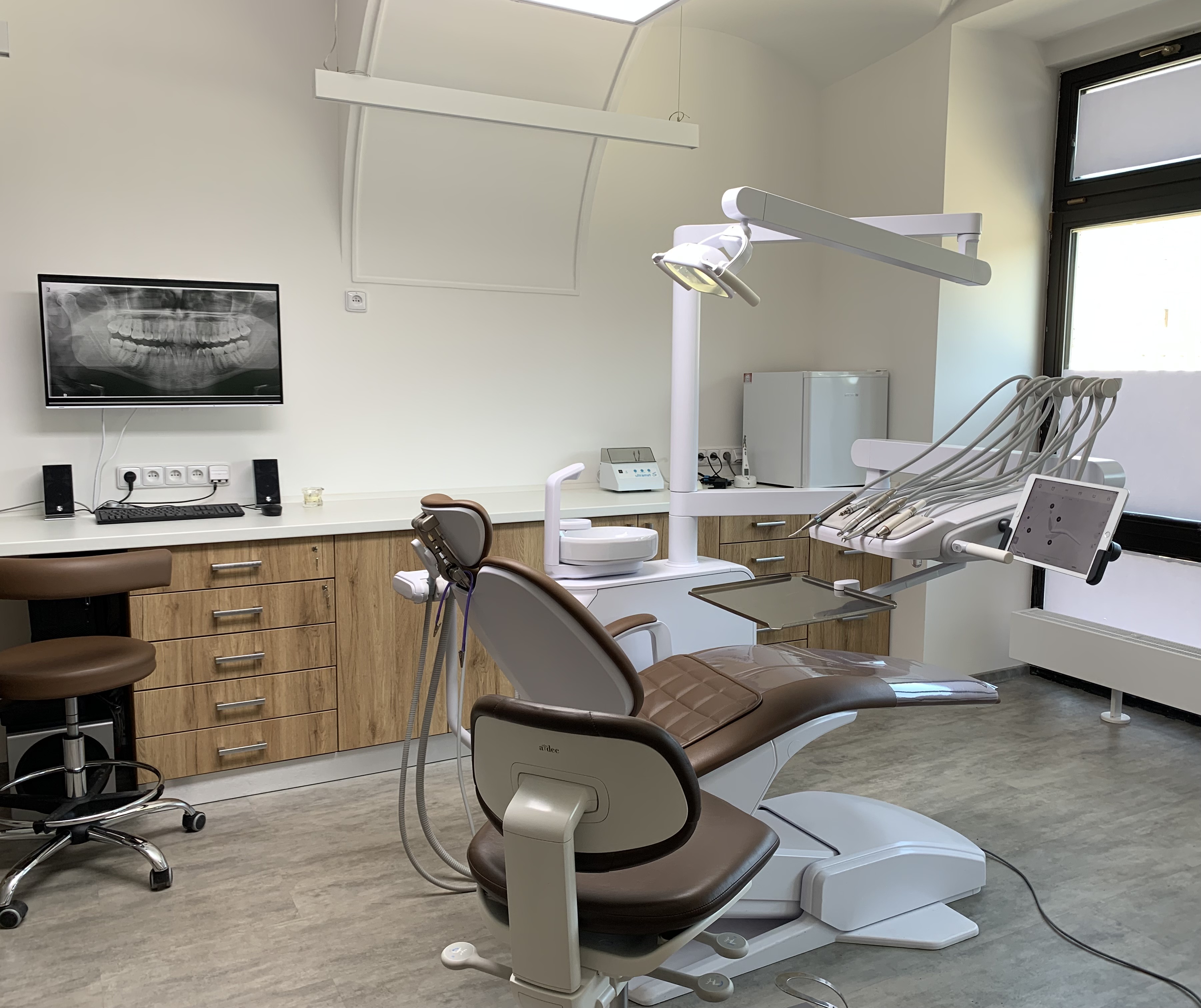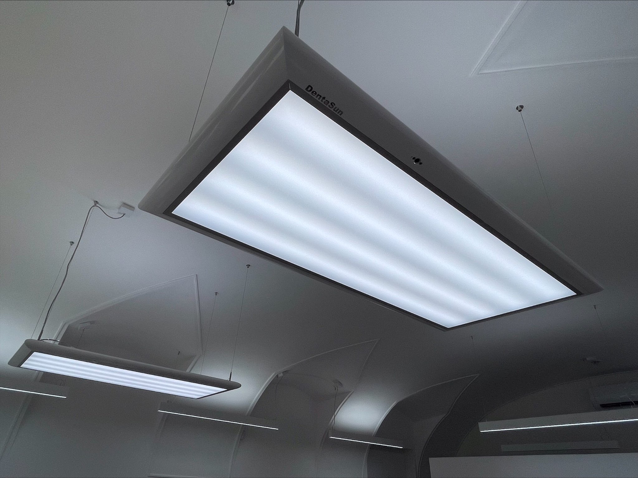 Naše stomatologické soupravy jsou osvětleny díky firmě Dentasun, a to konkrétně jejich nejvybavenějšími světly na trhu. Součástí světla je také fotokompozitní režim, který zabraňuje předčasnému tuhnutí materiálů citlivých na světlo.